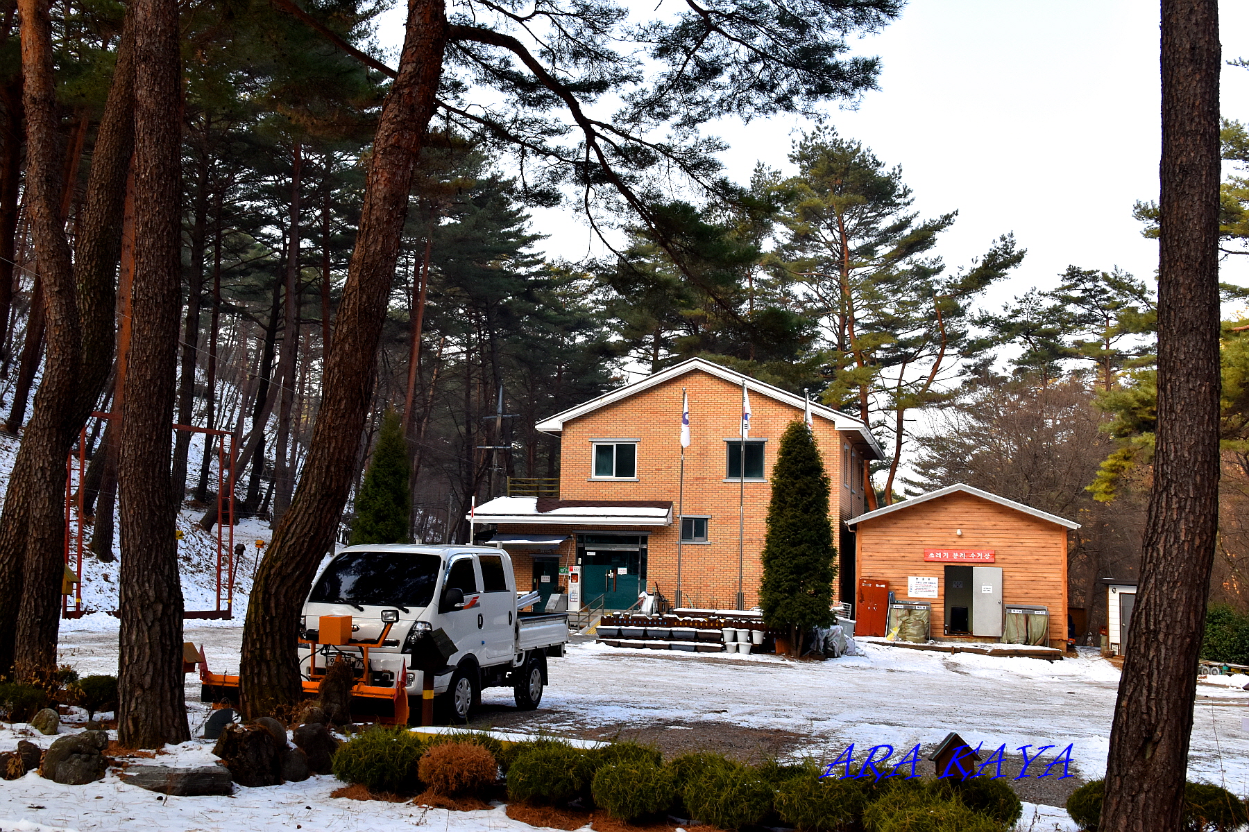 금강소나무가 빽빽한 산림욕장을 지나