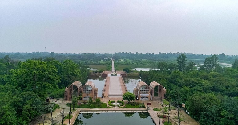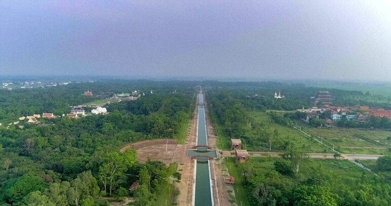 Drone view of Lumbini’s monsoon greenery