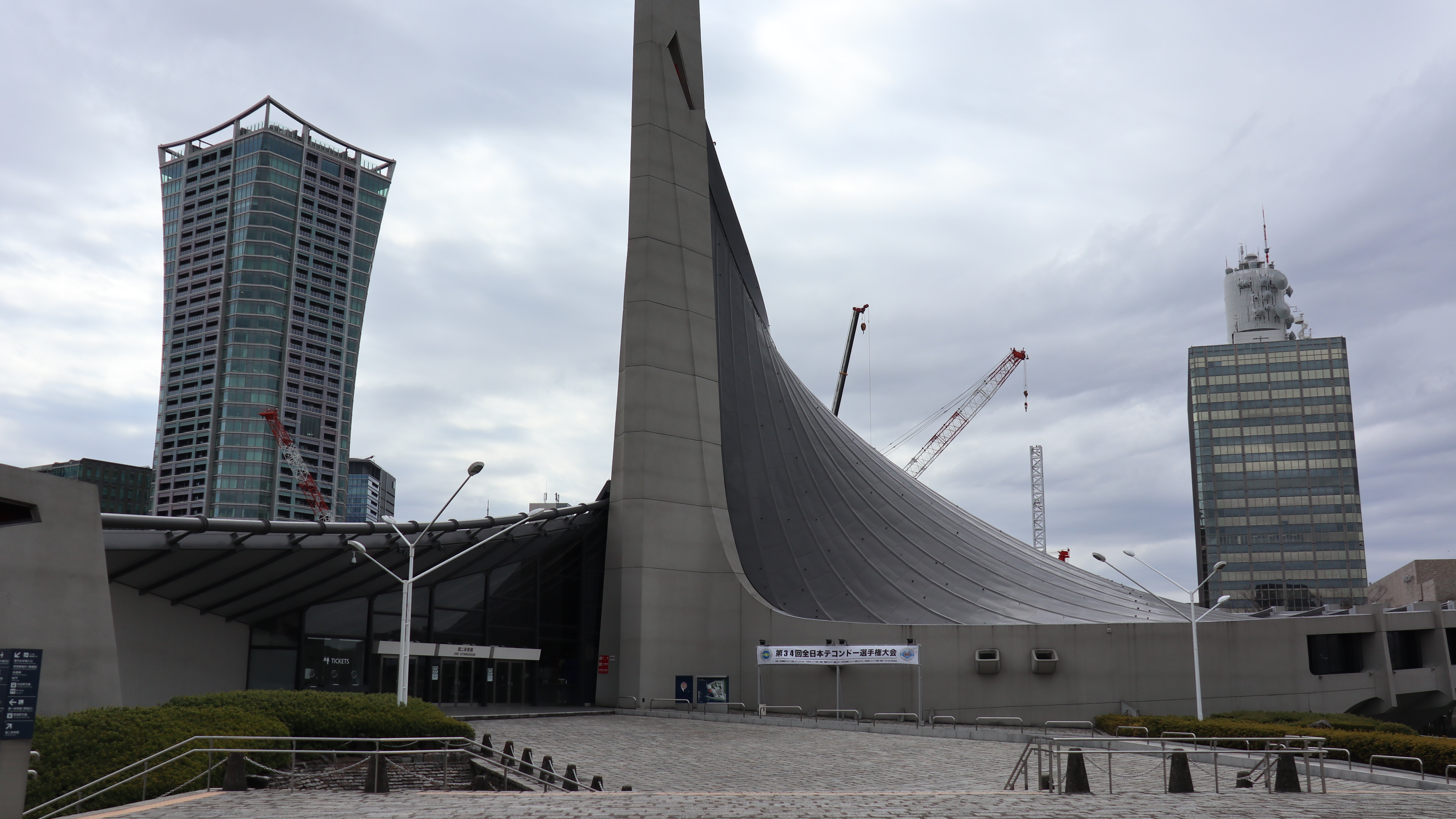 이 경기장은 당대의 구조기술을 활용하여 일본의 전통적인 이미지와 결합한 형태로 이해할 수 있습니다. 총 1만 5천 명의 관객을 수용할 수 있는 규모로 지붕의 유기적인 곡선과 팽팽하게 당겨진 직선이 대비되면서 박진감이 넘치는 형태를 자랑합니다. 126m에 달하는 두 기둥 사이에는 넓은 실내 수영장이 펼쳐집니다. 메인 케이블, 지붕 인장재 및 누름 케이블, 세 인장재가 제각기 구조적인 목적을 가지고 당겨지면서 조화로운 형태를 만들어냅니다. 힘의 흐름을 명확히 드러내는 건축 형태는 강한 인상을 남깁니다.