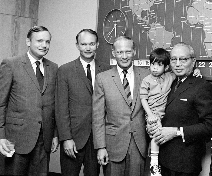 1969년 닐 암스트롱을 비롯한 아폴로 11호 우주비행사들이 뉴욕의 우탄트를 방문했을 때 UN 사무총장은 그의 손자 Thant Myint-U를 안고 있다.