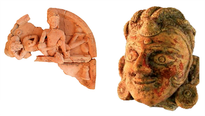 인도 고고학자 푸르나 찬드라 무케르지가 침식된 탄생 조각품을 발견