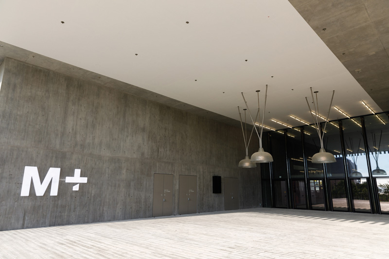 더불어 M+미술관은 홍콩 정부가 진두지휘하는 서구룡문화지구 시대 West Kowloon Cultural District(WKCD, 西九文化區)의 중심이기 때문에 2006년부터 개관이 확정되어 철저한 준비가 이루어졌다. 서구룡문화지구는 이미 복합 문화 공간 프리스페이스, 공연장 시취센터, 홍콩 아트 뮤지엄, 홍콩 고궁 미술관, K11 뮤제아 등은 이미 개관한 상태다. 이번 M+미술관의 개관으로 홍콩 문화 중심지가 센트럴에서 서구룡으로 단박에 자리를 옮긴다는 점이 더욱 흥미롭다. 홍콩섬에서 바라다보이는 M+미술관은 대단히 아름답고, 물론 M+미술관에서 바라보는 홍콩섬도 절경이다. 2015년부터 본격적인 공사를 시작한 이 미술관은 5년간의 공사 기간을 예상했는데, 7년이 걸려 완공되었다. 빅토리아 항구 해안에 위치하고 있으며, 간척지에 건축되었기 때문에 건축물의 견고함이 무엇보다 중요했다. 총 6만5000㎡ 규모이며, T자를 거꾸로 눕힌 형상의 디자인이라 재미있다. 하단에 수평으로 된 거대한 공간이 있고, 그 위에 수직으로 18층 건물이 있는 것. 33개의 전시실, 교육센터, 시어터 3곳, 미디어 테크 라이브러리, 2곳의 뮤지엄숍과 레스토랑, 카페를 갖추고 있다. 미술관 외관은 녹색 세라믹 패널 14만 개가 감싸고 있다는 점이 특별하다.