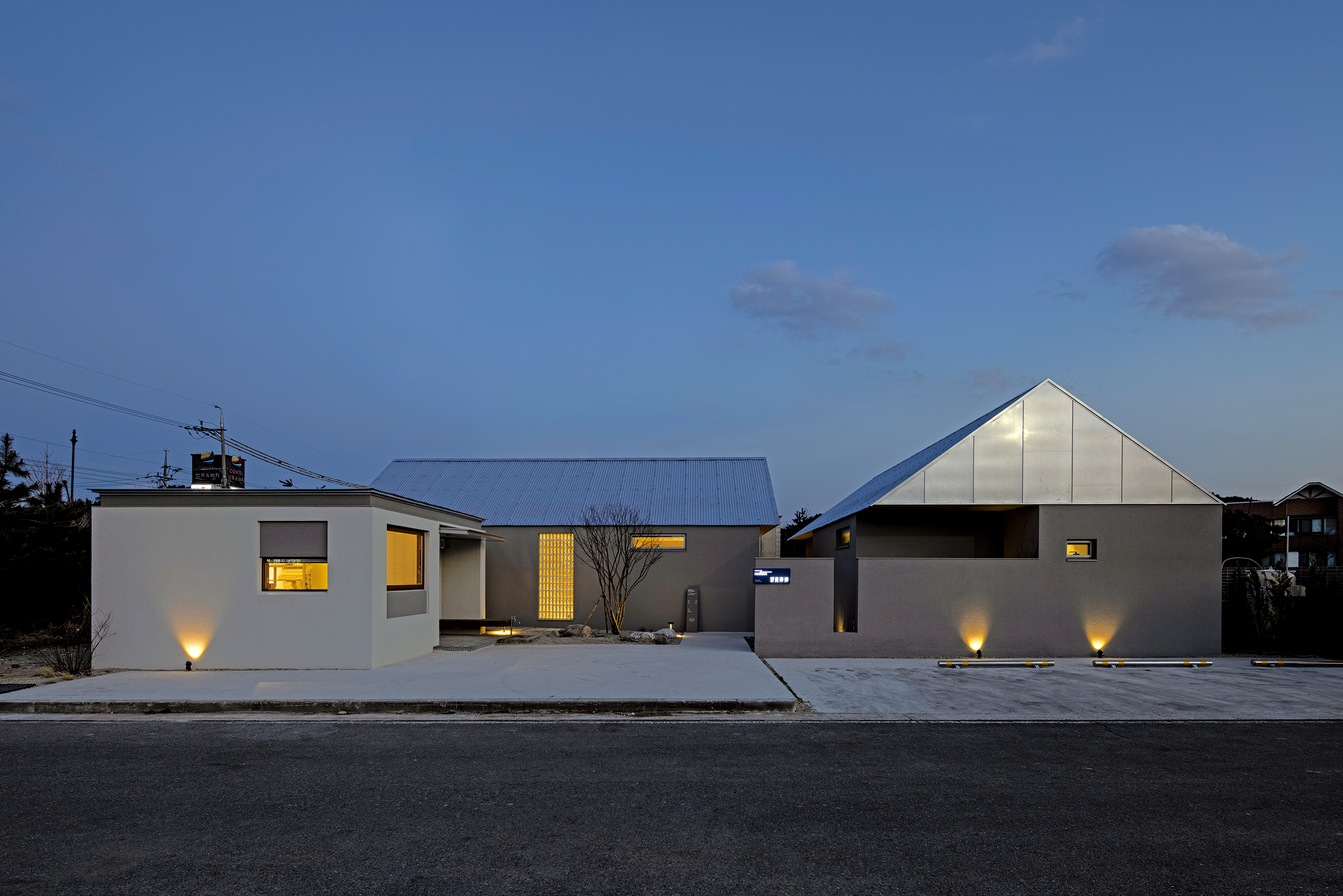 Compared to other beaches in Yangyang, which is represented by surfing, freedom and youthful vigor, the atmosphere of Hajodae Beach, which is more peaceful and frequented by families, greatly influenced the initial plan and spatial design of the building. In order to capture the vitality of the sea and the peace of the sea at the same time, the layout of the building is static, but various materials such as metal corrugated, stone, polycarbonate, and glass blocks are combined, and the opening of the building and fence is planned so that various scenes overlap. It was intended to symbolize and express freedom.