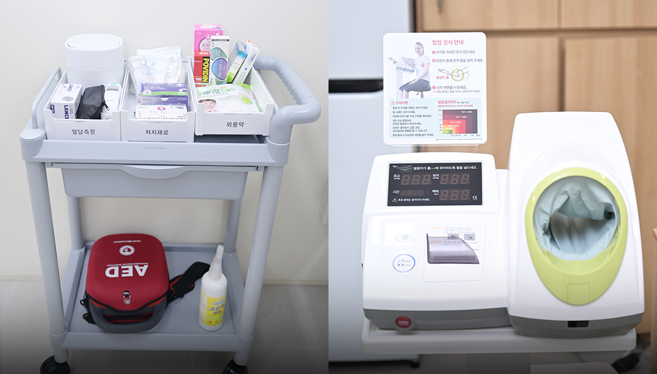 - 혈압, 심박수, 체온, 혈당, 산소포화도 등 활력징후 측정