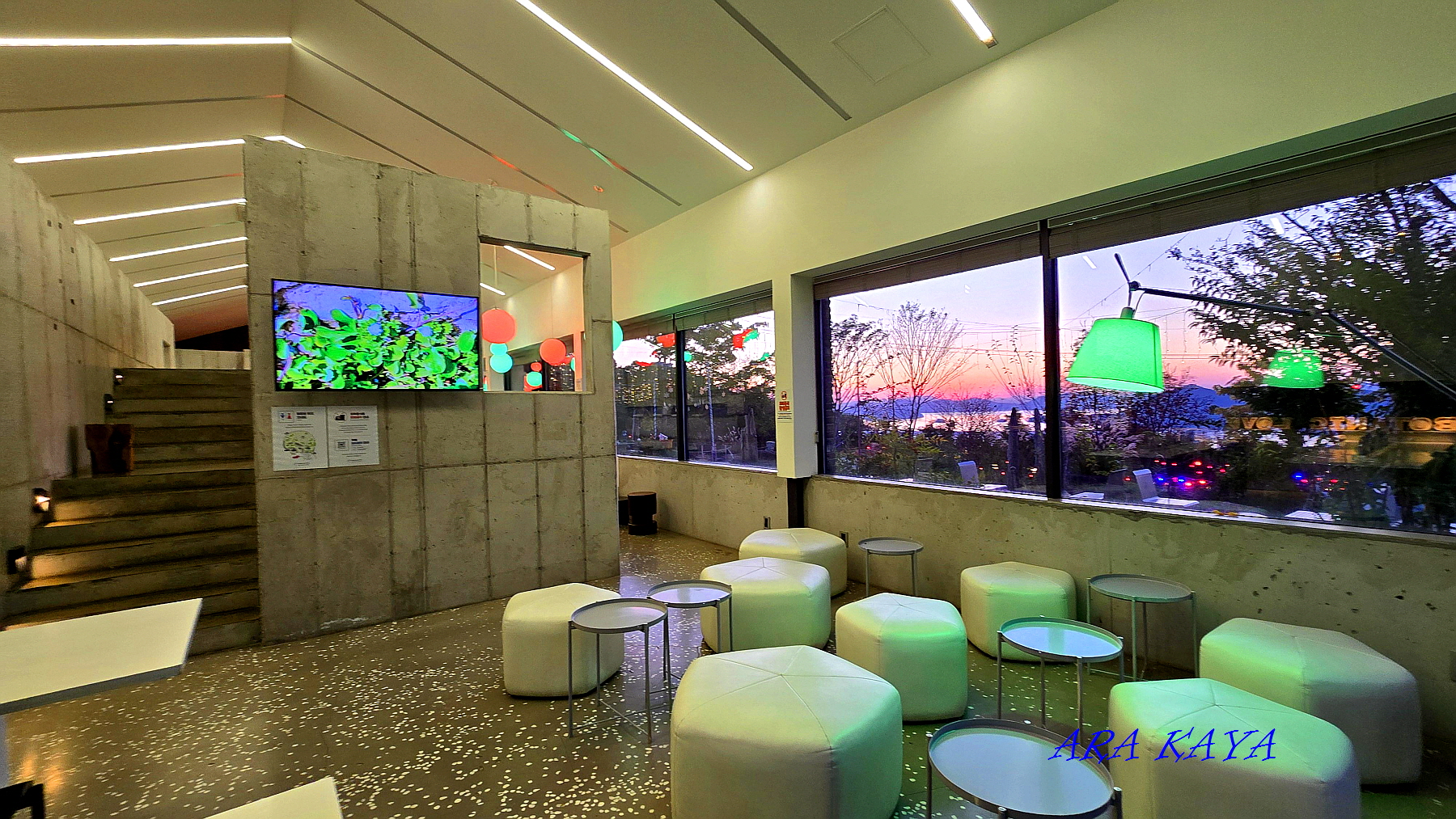 진해 보타닉뮤지엄 카페테리아는 온실 위에 위치한 자연 경관과 어우러진 공간으로, 음료·디저트 메뉴와 힐링 요소가 다양하게 구성되어 있다.eundaring.tistory+2