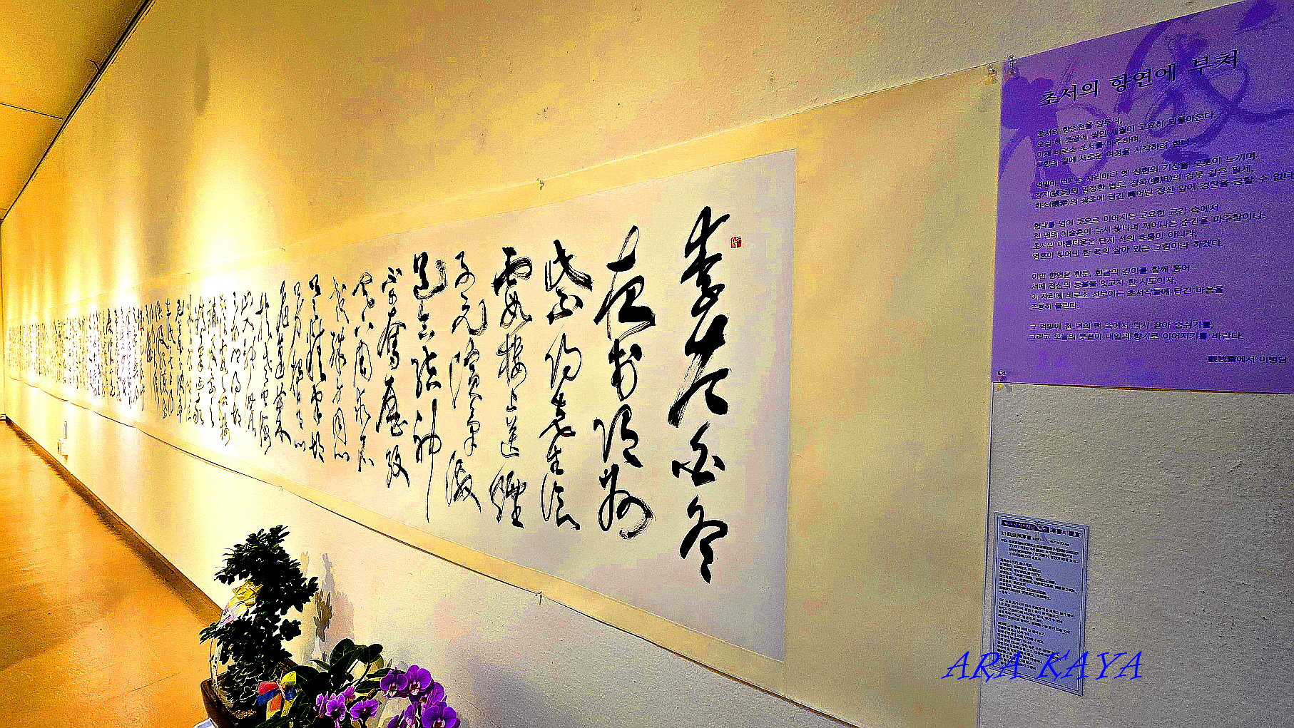 전시장 구성은 일반적으로 대형 초서 작품을 중심에 배치하고, 주변에 중·소형 작품을 리듬감 있게 배열하여 관람 동선에 따라 필획의 변화와 글자 구조의 해체·재구성을 단계적으로 경험하도록 설계될 수 있다. 특히 초서 특유의 비정형적 구조와 과감한 생략을 강조한 작품은 가까이에서는 추상 회화처럼 보이고, 멀리서 보면 문자 구조가 서서히 드러나는 식으로, 관람 거리에 따라 인상이 달라지는 ‘문자-추상’의 경계를 넘나드는 시각 경험을 제공할 것이다.cwcf+3