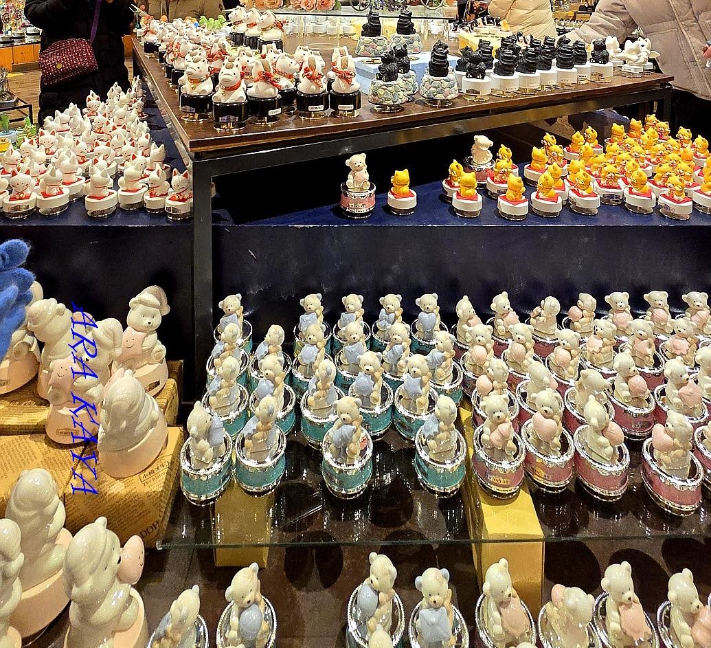 맞춤 제작 코너에서 음악·디자인 선택 가능하며, 작은 기념품 오르골(1,000엔대)이 많습니다.네이버