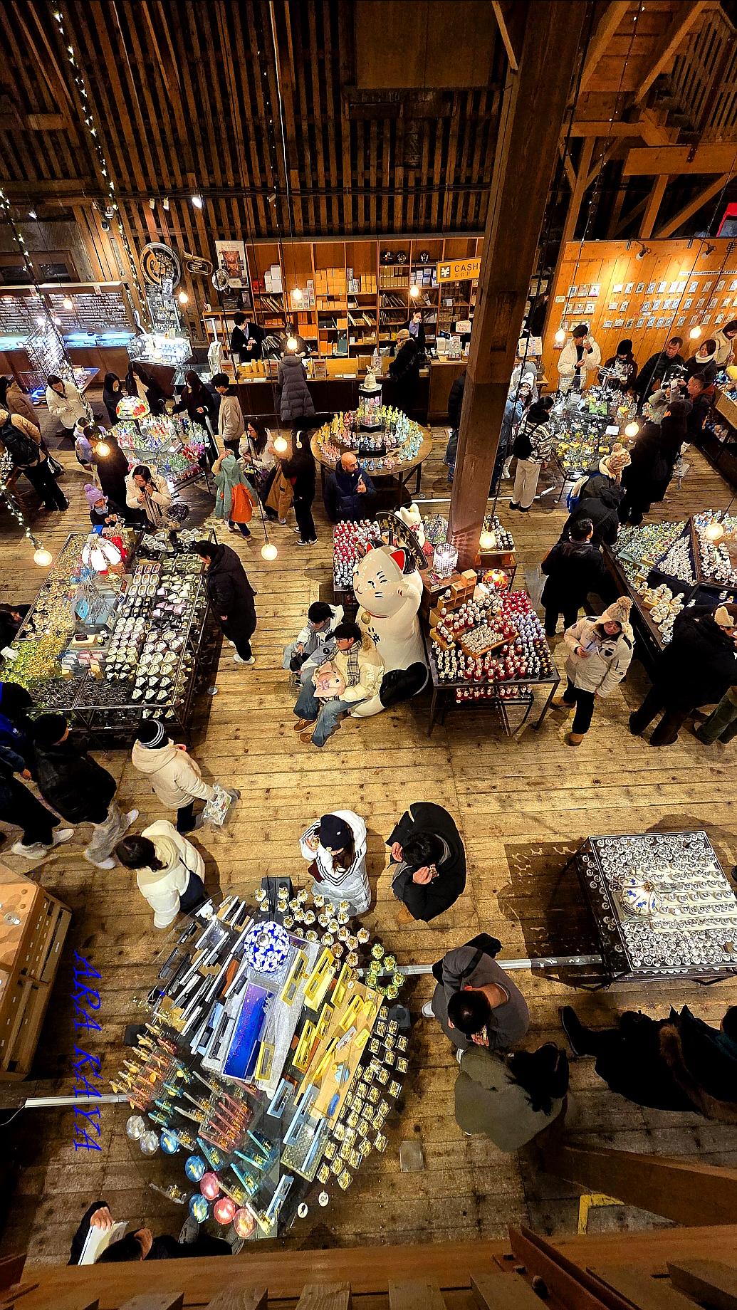 넓은 보이드 구조 대형 홀에 유리·목재·도자기 오르골이 주를 이룹니다.라이브재팬+1
