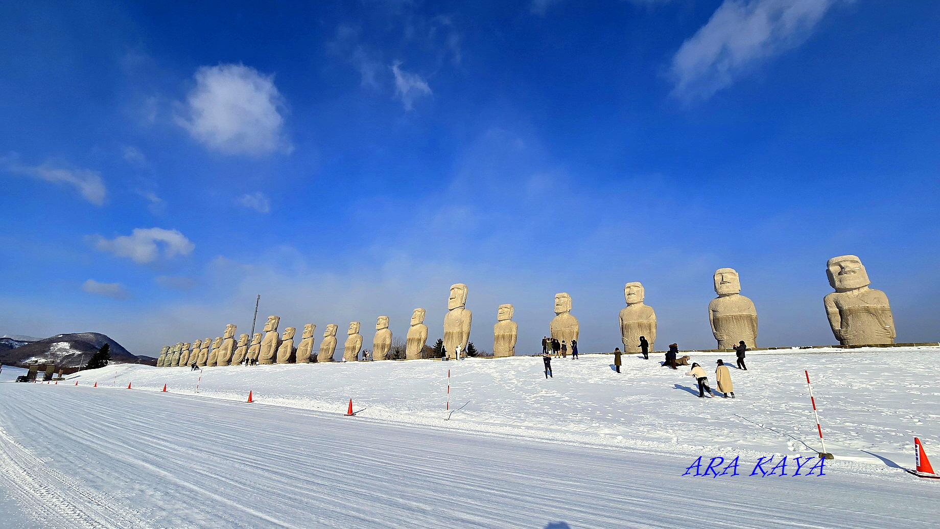 타키노레이엔은 1982년 개원한 일본 최대 규모(총면적 180만㎡) 공원형 묘지로, 초기부터 관광 명소화를 위해 독창적 조형물을 도입했습니다. 모아이상은 묘원 30주년 사업(2010년대 초) 무렵 설치된 것으로 추정되며, 기존 납골당의 단조로움을 극복하고 SNS 시대에 맞춘 포토존으로 기능합니다. 이스터 섬 모아이(실제 높이 4~10m 규모)의 원형을 재해석한 이 작품들은 일본 조각가들에 의해 제작되었으나, 정확한 작가명은 공개되지 않았습니다. 비슷한 시기 부처의 언덕 프로젝트와 연계되어 묘지의 상징적 재탄생에 기여했습니다.홋카이도 방문+5