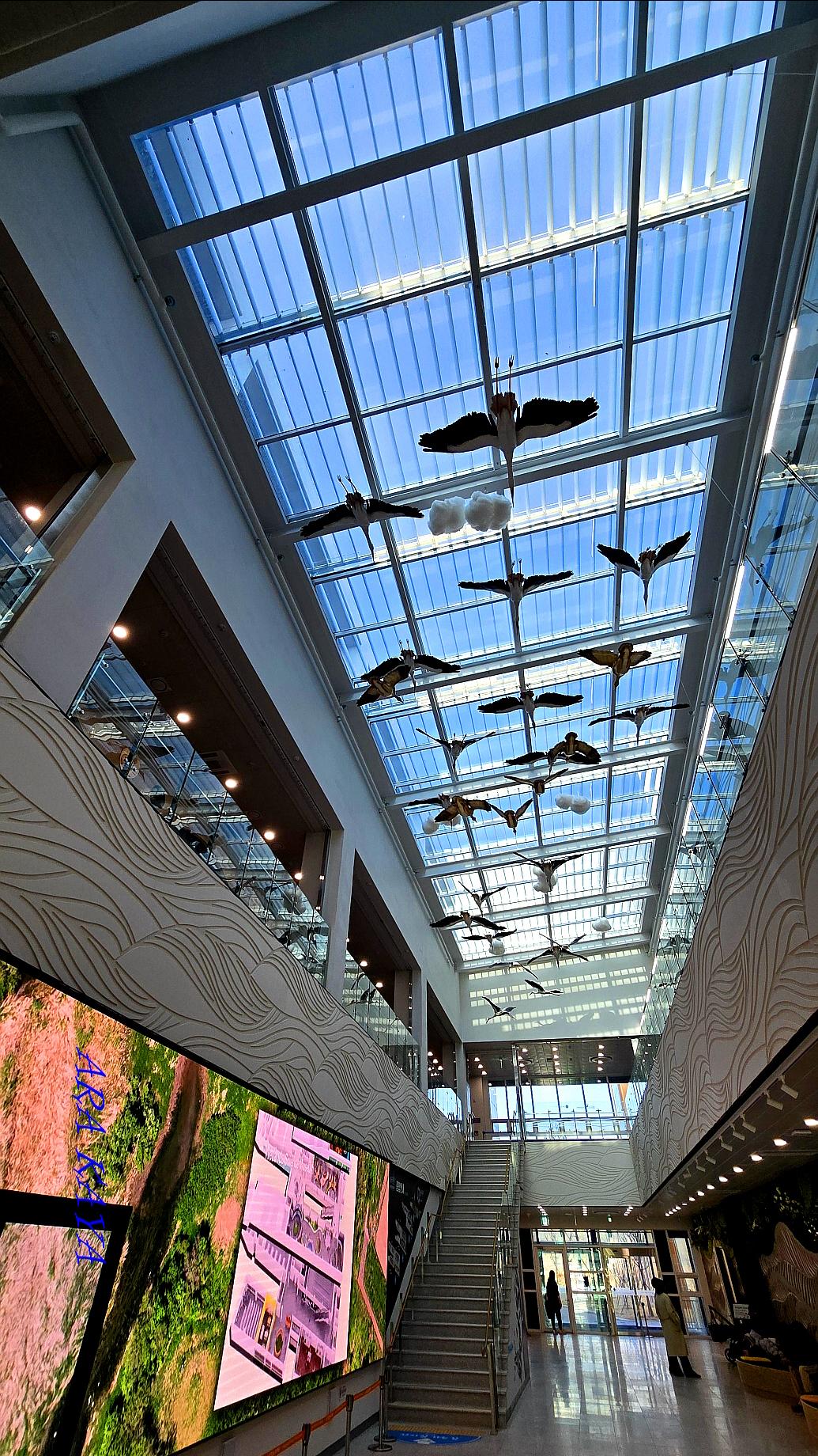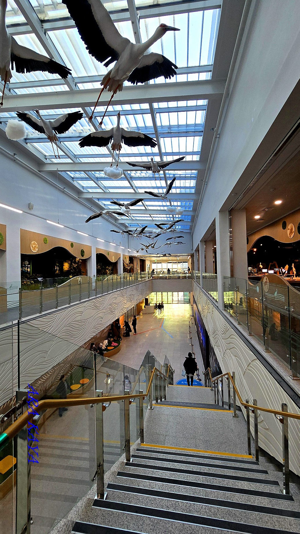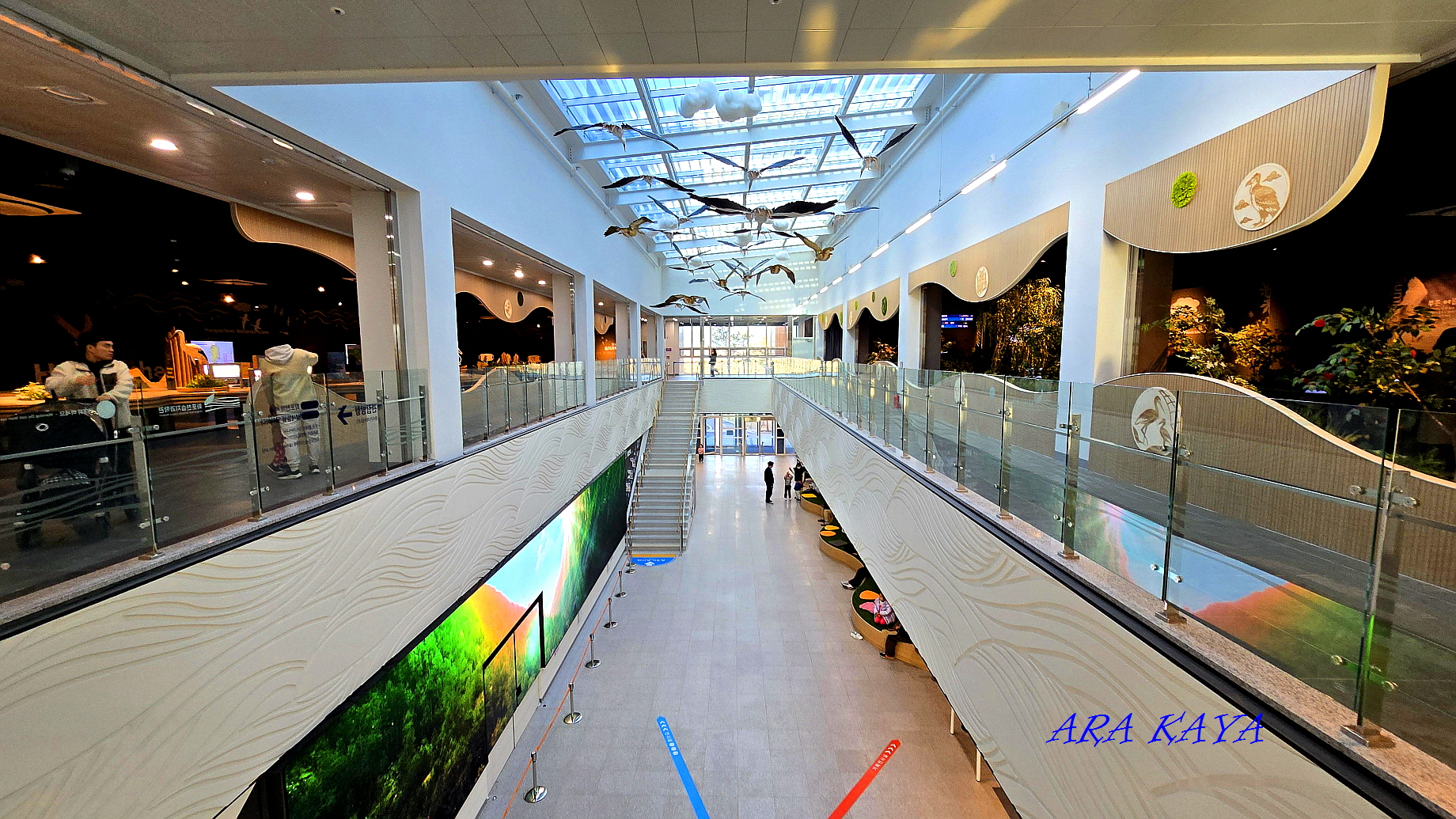 - 1층: 기획전시실, 상설·특별전이 열리는 전시 공간과 생태교육실이 배치되어 있으며, 어린이·시민 대상 강연·체험 프로그램이 이루어지는 교육의 중심층이다. 로비에는 안내데스크와 북라운지(작은 도서공간)가 있어 습지·철새 관련 도서를 읽으며 쉬어갈 수 있는 공간도 마련되어 있다.[blog.naver]