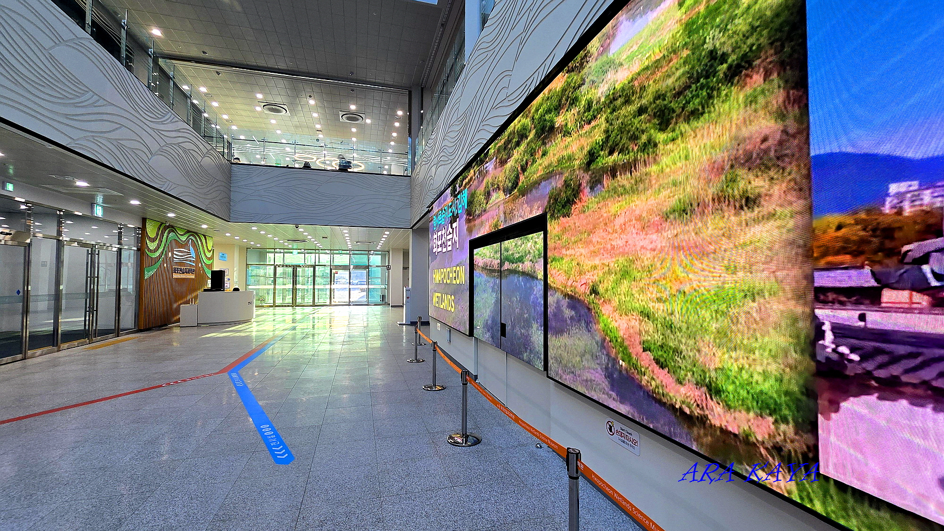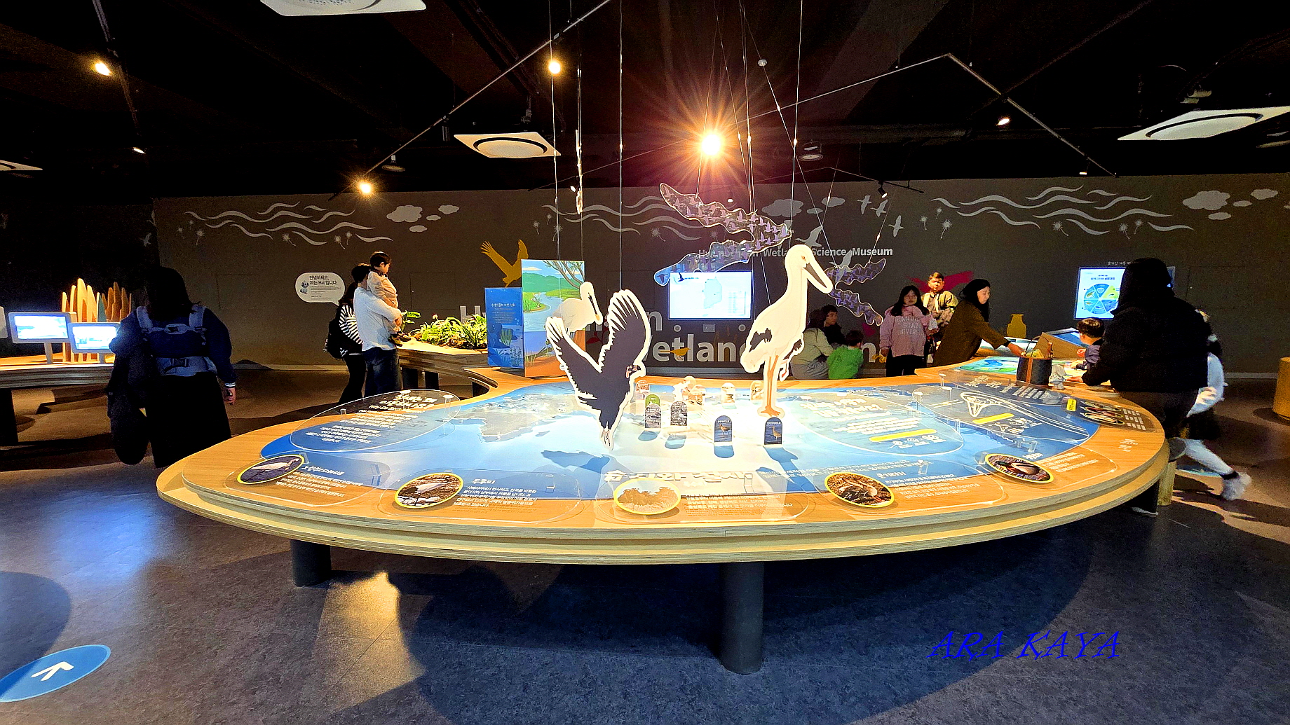 - 2층: ‘습지과학실’, 화포천의 사계(봄·여름·가을·겨울)와 수질·저서생물·어류와 양서·파충류, 철새를 다루는 체험형 전시가 집중된 층으로, 인터랙티브 영상·모형·라이브스케치 등을 통해 습지 생태를 다감각적으로 배우도록 구성되어 있다. 곤충·동물이 보는 시야를 체험하거나, 기후·물순환에 대한 과학적 설명을 놀이처럼 익히는 콘텐츠가 있어 초등 저·중학년 단체 견학에 특히 호응이 높다는 평가가 나온다.[blog.naver]